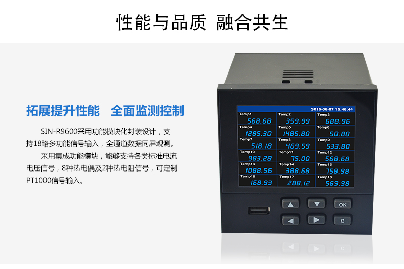 SIN-R9600無(wú)紙記錄儀內(nèi)部采用高速、高性能32位cortex-M4微處理器。電路板經(jīng)過(guò)“防腐、防潮、防塵”三防涂覆處理。高性能儀表電源有強(qiáng)大的抗干擾能力,能有效抑制外部諧波干擾,大大提高了整機(jī)的穩(wěn)定性。